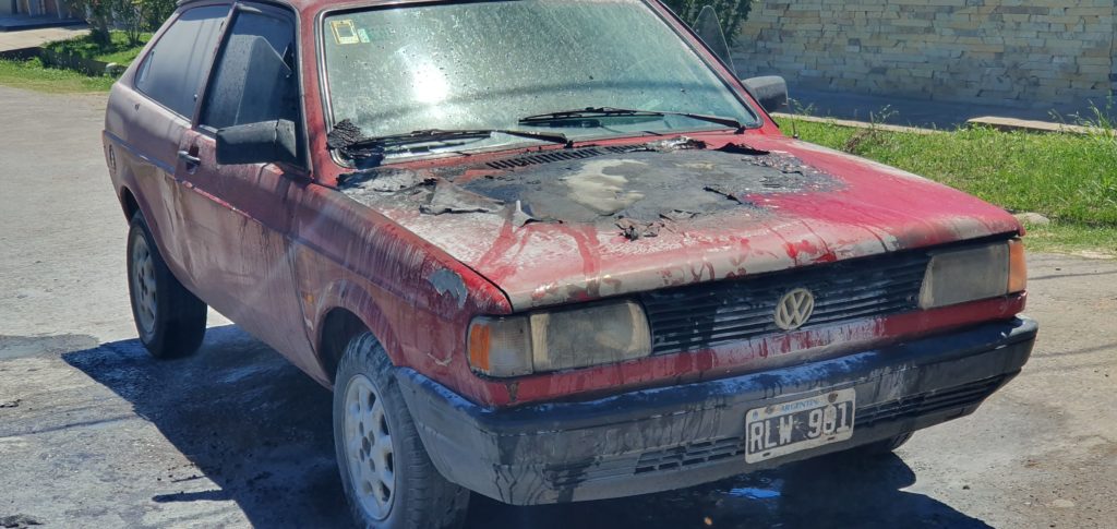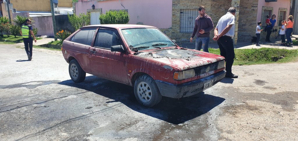 Este mediodía de jueves alrededor de las 12 hs, se produjo el incendio de un automóvil Volkswagen Gol color bordo por problemas eléctricos se comenzó a incendiar en la esquina de Las Heras y Dipietri.