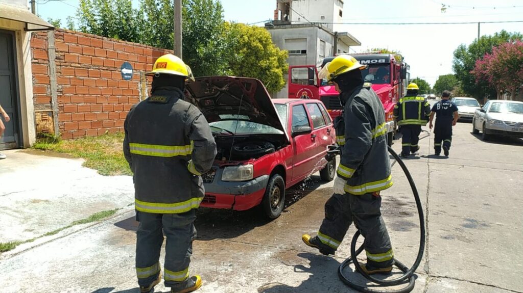 Este jueves alrededor de las 11:30 hs un en calle Rivadavia al 2000 donde un automóvil Fiat Uno sufrió un desperfecto eléctrico que inicio el fuego en la zona del motor.