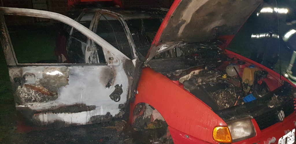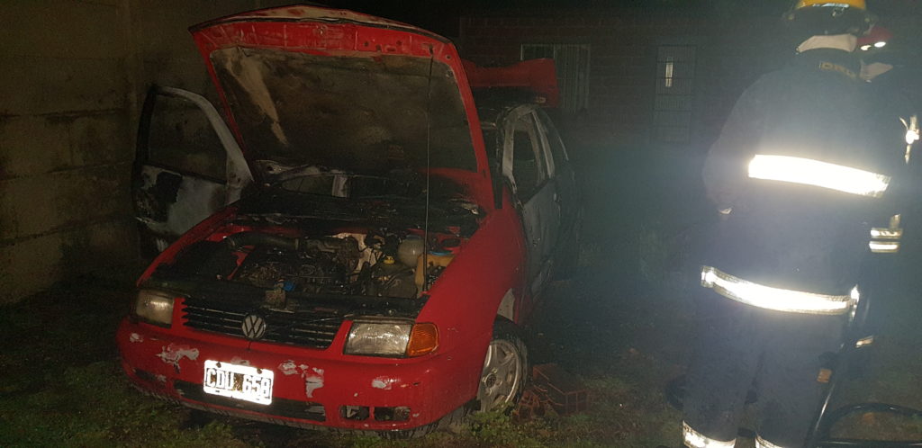 Este jueves en horas de la noche, pasadas las 21 hs una dotación de Bomberos Voluntarios a cargo de Román Montenegro se hizo presente en calle Ayacucho donde se incendio un vehiculo Wolksvagen Polo color rojo.