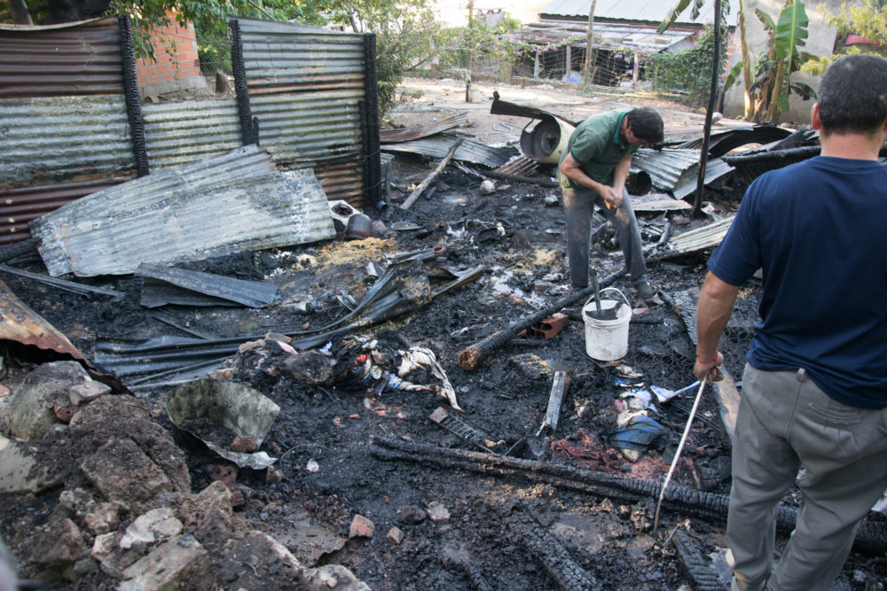 Luego del llamado al 911 se envió una dotación de Bomberos liderada por Román Montenegro, quien declaró: «al llegar al lugar se encontró una vivienda de construcción precaria, de madera y chapa, a la altura de media barranca. Allí se combatió el fuego evitando así, la propagación del fuego a otras propiedades linderas. Se trabajó durante un rato hasta llegar al derrumbe de la vivienda”. “Las pérdidas son totales, además, en el interior había dos garrafas que también explotaron”.