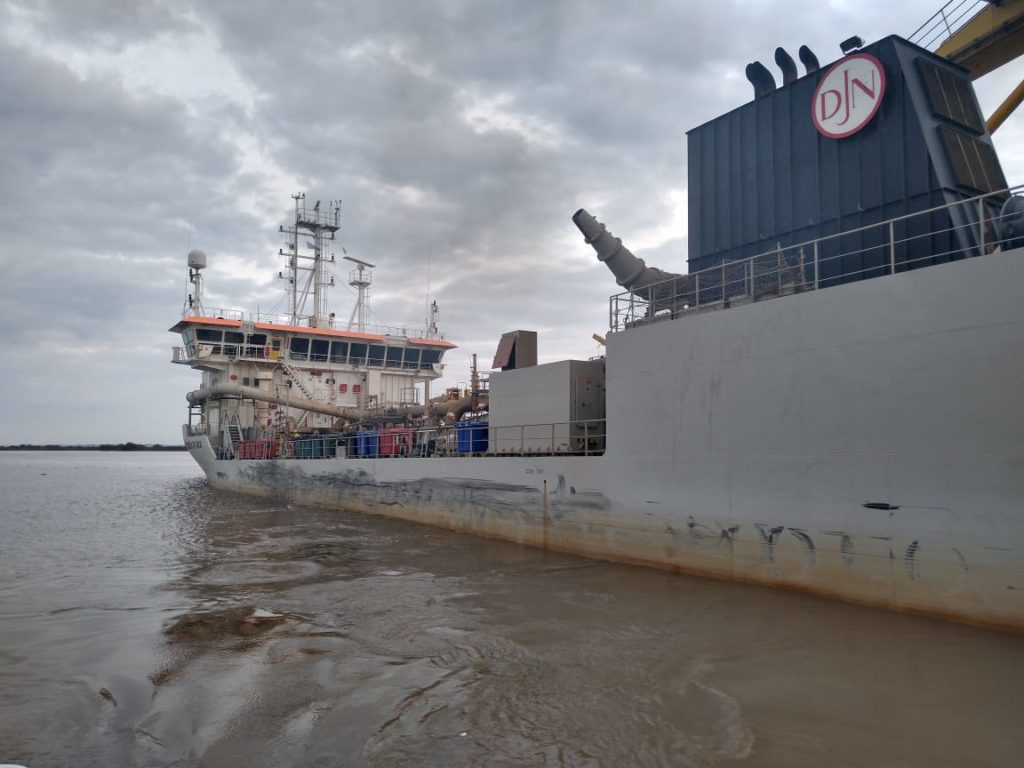 El Consorcio de Gestión del Puerto de San Pedro informa que se encuentra trabajando la draga Alvar Nuñez Cabeza de Vaca que extraererá aproximadamente 100 mil metros cúbicos para concluir su labor dejando todo el vaso portuario con una determinante de 9 mts al 0 local. Esta tarea que demandará al menos hasta el fin de semana garantizará la operatoria de buques cargados a pleno con calados superiores a los 10 mts. Además finalizó su tarea la draga ARPA 1 que realizó el corte definitivo del talud del muelle cabecera. Estas obras en conjunto representan las acciones con las que se pretende mantener y mejorar las condiciones de nuestro puerto para poder estar en condiciones óptimas de respuesta a quienes continúan trabajando desde aquí y a quienes pudieren hacerlo en el futuro.