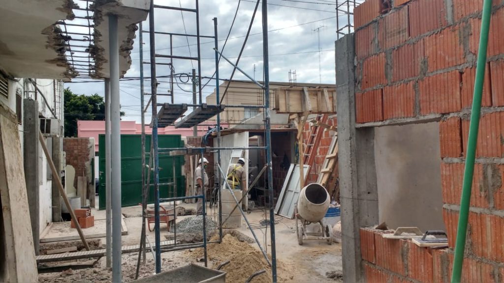 La obra comenzó en diciembre y se frenó en marzo, hasta que se obtuvo una autorización especial para continuar, adaptando todos los protocolos a la actualidad y por tratarse de una obra destinada a fortalecer el sector de salud.