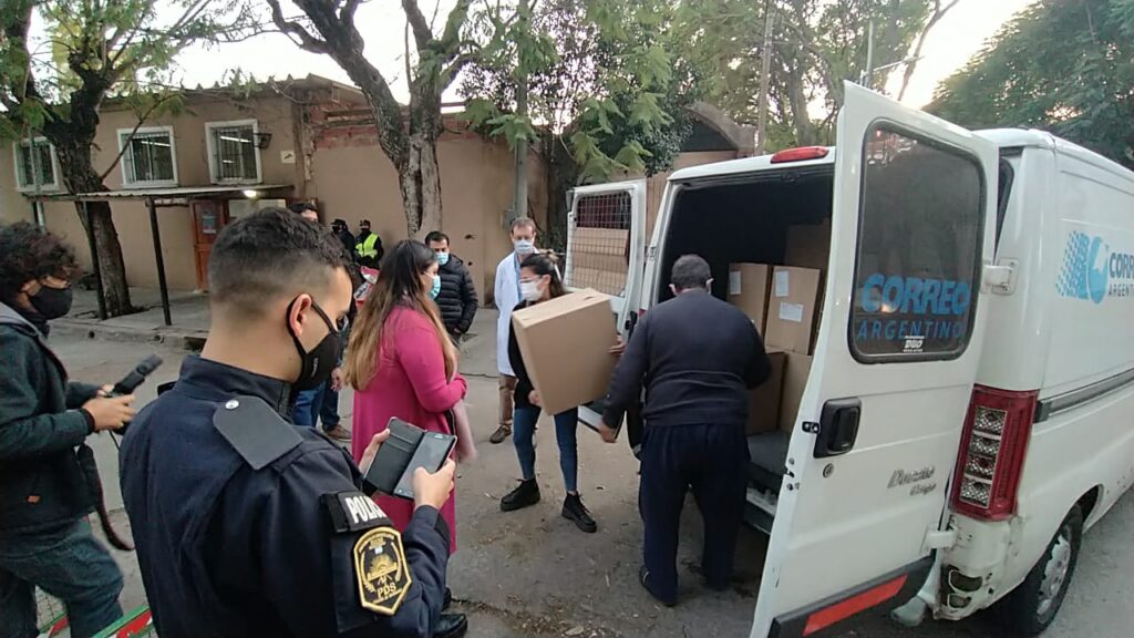 La Municipalidad de San Pedro informa que con el acompañamiento de un móvil policial fueron entregadas esta mañana 3600 nuevas dosis (para primera aplicación) de la vacuna AstraZeneca en la posta sanitaria que funciona en el Club de Jubilados.