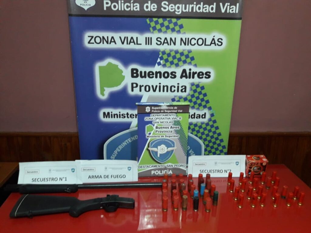 El ciudadano de 42 años, oriundo de San Antonio de Areco, el cual manifiesta que venían de una de las islas de San Pedro. Mediante requisa, juntamente con el apoyo de policía de Río Tala, en presencia de testigo hábil, se secuestra en el interior del rodado, una escopeta Marca «Taurus» modelo 023 cal. 12/70, con 29 cartuchos calibre 12/70 y 22 cartuchos calibre 16. Al realizar la consulta al chofer, manifiesta ser de su propiedad y que carece de documentación alguna.