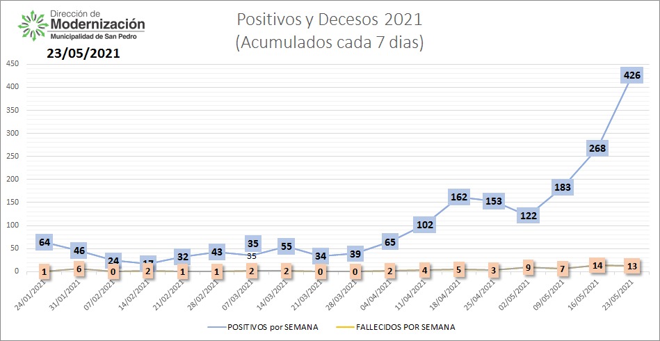 La semana del 16 de mayo fue la peor en este mas de un año de pandemia donde hubo 14 muertes de ciudadanos sampedrinos y la semana pasada la acompaño con 13 fallecimientos, con personas de diferentes edades y estado de salud. En lo que va de esta semana ya llevan informadas 6 decesos teniendo en cuenta que aun queda 4 días para terminar esta semana y el mes.