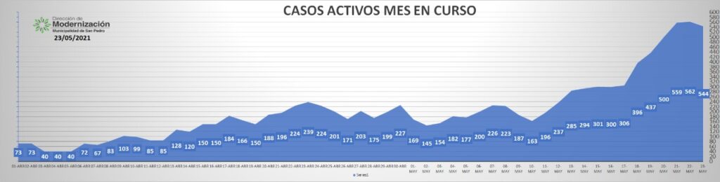 La cantidad de personas que se encuentran transitando la enfermedad de no a bajado mínimo 450 activos con picos de hasta 562 infectados.
