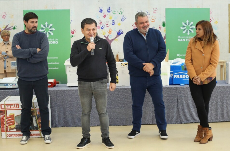 Esta mañana se llevó a cabo el acto de entrega de materiales y herramientas a emprendedores locales en el Estadio Municipal en el marco del programa Banco de Maquinarias, Herramientas y Materiales. En esta ocasión fueron 31 beneficiarios de los rubros gastronómicos, criaderos, peluquería, construcción, viveristas y librería quienes accedieron al programa y recibieron materiales para comenzar sus emprendimientos.