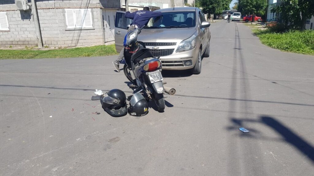 El hecho tuvo lugar este jueves pasado el mediodía en calle Italia y Almafuerte, donde una motocicleta en la que circulaban dos personas mayores fueron impactadas por un automóvil Chevrolet conducido por un masculino.
