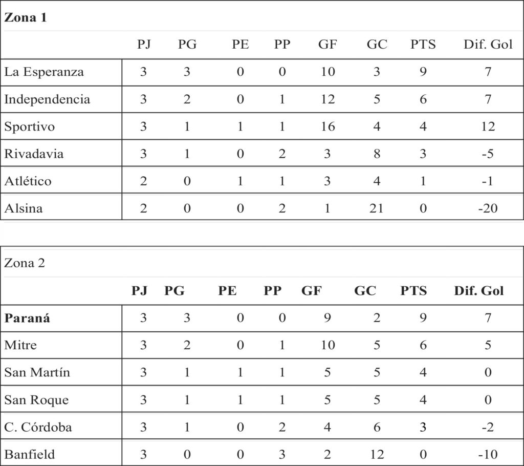 La sexta división (cat. 2006) jugó en la jornada del domingo en dos canchas, el Estadio Municipal y en La Esperanza. Son punteros de la zona 1 La esperanza y en la 2 Paraná. Hoy juegan en Rivadavia y Gral. San Martín la cuarta fecha.