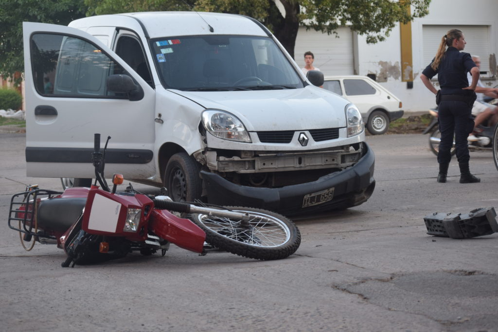 El Accidente se produjo en la tarde de hoy alrededor de las 19:30, en la intersección de las calles Sarmiento e H. Yrigoyen. El accidente tubo lugar entre una moto Mondial 150 cc conducida por una joven y el otro vehículo una Renault Kangoo conducido por un señor mayor de 30 años. aparentemente el mismo se produjo mientras la moto circulaba por Sarmiento cuando es impactada desde el costado por la camioneta que circulaba por la otra calle.