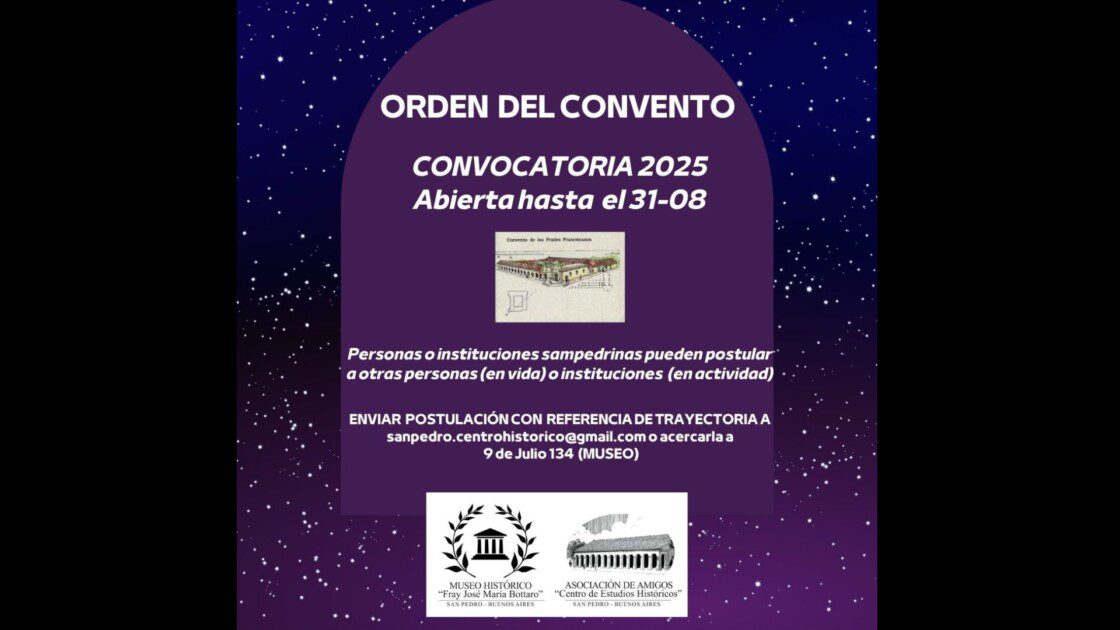 La Asociación de Amigos del Centro de Estudios Históricos de San Pedro anunció oficialmente la Convocatoria 2025 a la Orden del Convento, una distinción que reconoce en vida a vecinos y entidades honorables de la comunidad. Según informaron, las bases de la convocatoria ya están disponibles y podrán consultarse junto con el listado de galardonados […]