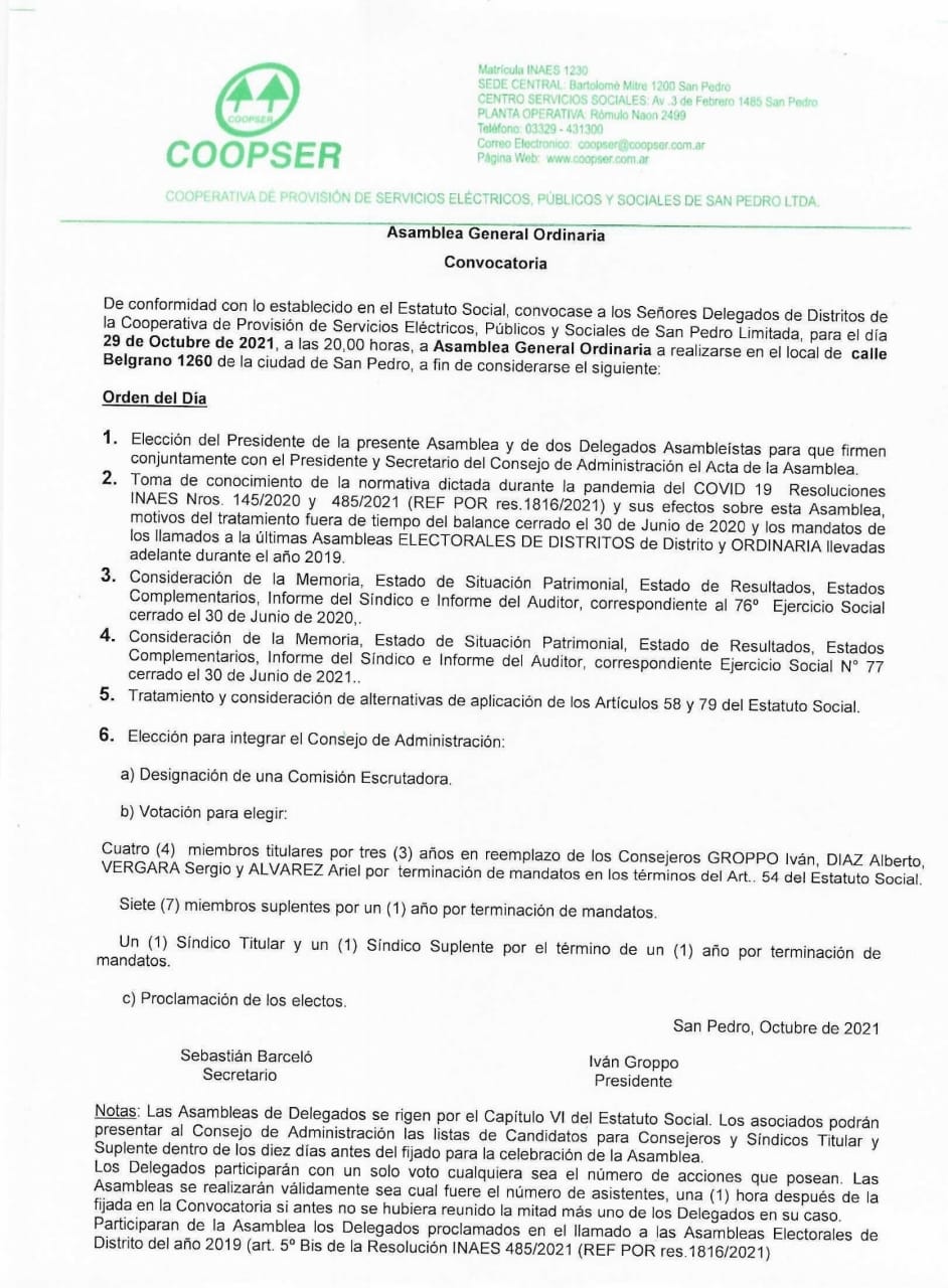 COOPSER anuncia un corte programado de energía por tareas de mantenimiento