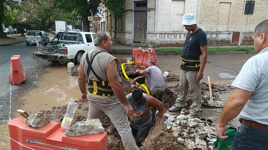 La Secretaría de Servicios Públicos informa que personal del área de Servicios Sanitarios se encuentran trabajando en la zona de Gomendio y 3 de febrero para la reparación de un caño que provocaba la perdida de agua.