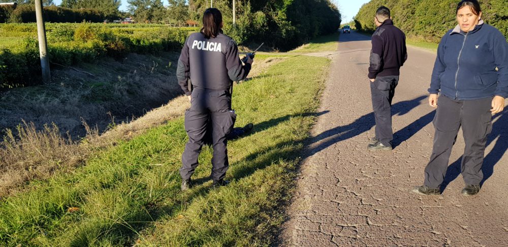Minutos más tarde, al llegar el móvil policial, un testigo informó que la camioneta blanca se encontraba kilómetros más adelante en un callejón, al costado del predio de Barrancas San Pedro, a 100 m de la ruta. Este testigo lo había seguido luego del accidente.