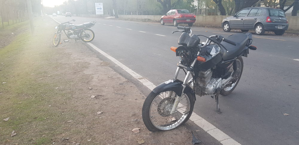El último accidente tuvo lugar en la Av. España entre dos motocicletas. En este caso una motocicleta Suzuki AX100 con dos jóvenes menores de edad que circulaba en sentido hacia el Puerto, frente a la cancha de Tiro Federal iba realizando una maniobra peligrosa denominada “Willy” perdiendo la estabilidad, cruzándose de carril y cayendo al piso. Esto provocó que otra motocicleta Honda Titan 125 cc conducida por un hombre de alrededor de 50 años que circulaba en la mano contraria, lo impactara cayéndose al suelo, sufriendo golpes y laceraciones. Fue trasladado por el servicio de emergencia al nosocomio local.