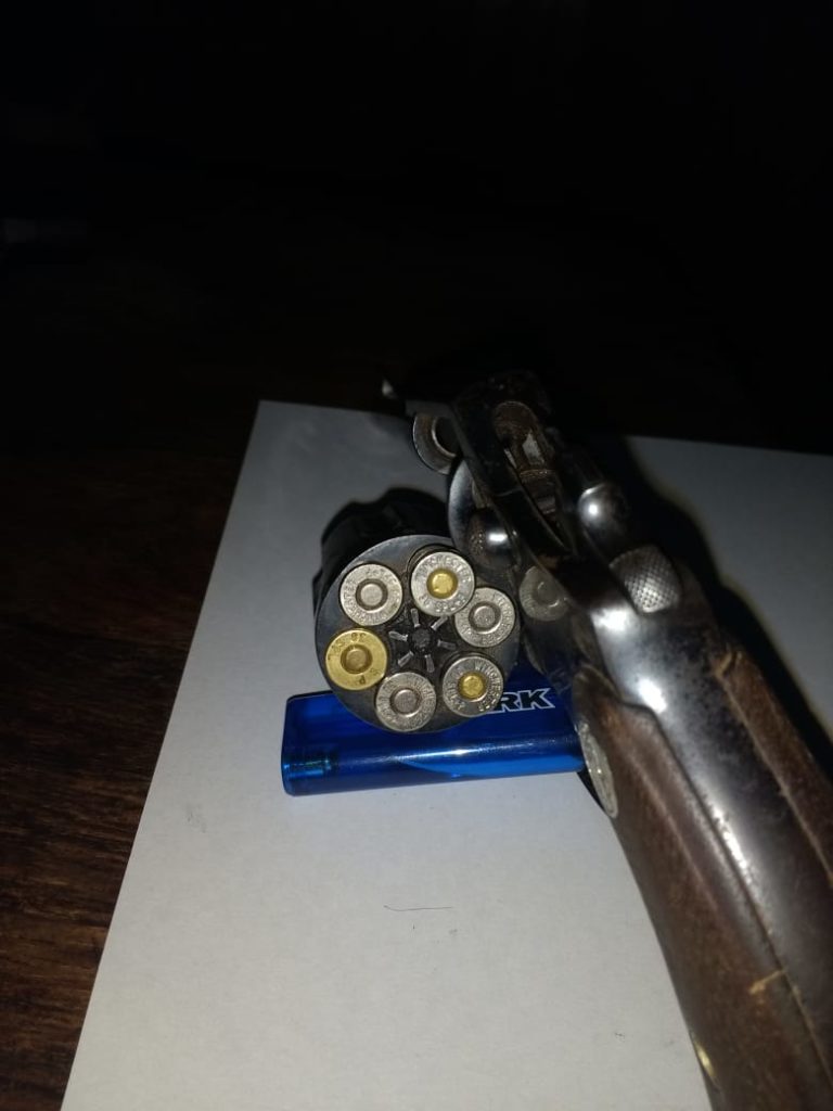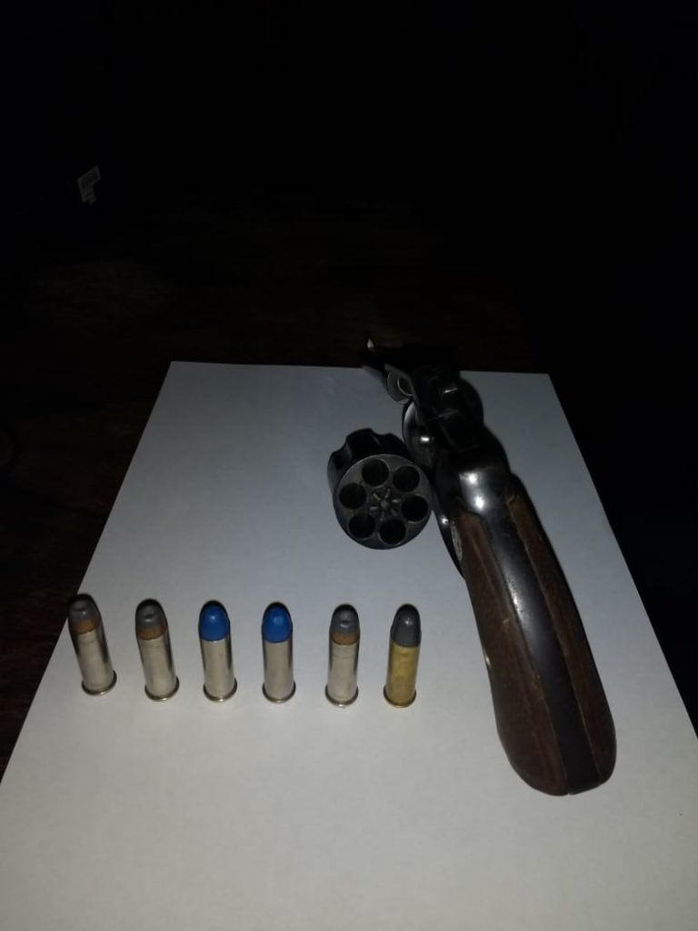 Logrando luego su aprehensión trasladándose a la Dependencia Local; ademas los efectivos abocados al rastrillaje en zona de barrancas, lugar del hecho, proceden al hallazgo de un Revolver marca COLT cal. 38, con seis proyectiles alojados en su tambor.