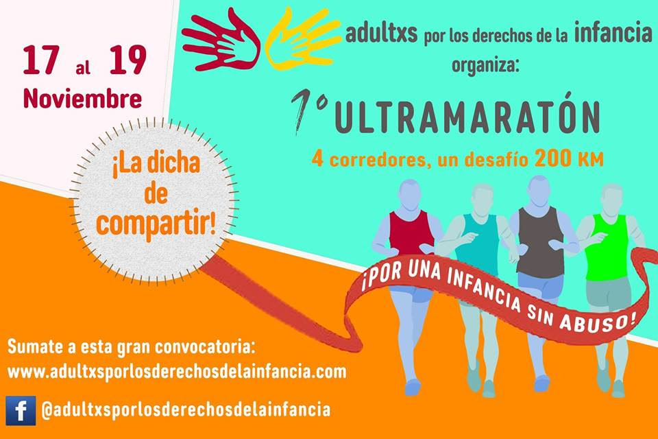 El viernes 17 de Noviembre a las 18 se largará la Primera Ultra maratón Visibilizadota de la lucha contra el delito de Abuso Sexual. La iniciativa de la asociación civil «Adultos por los derechos de la infancia» eligió nuestra ciudad para poner en marcha entre el 17 y el 19 de Noviembre una actividad deportiva y social que coincide con la fecha del Día Internacional de Prevención del Abuso Sexual.