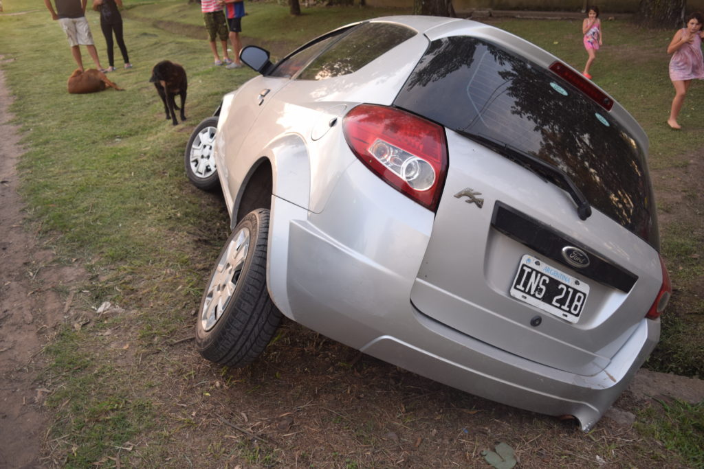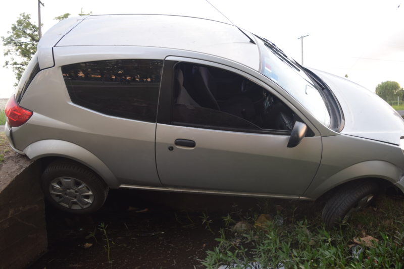 En la tarde de hoy alrededor de las 20:00 hs se produjo un siniestro en el ingreso de el camino al aeroclub y calle Estrada, donde dos jóvenes mujeres de alrededor de 30 años de edad que circulaban en un Ford Ka Gris que al querer esquivar una moto que venia desde el aeroclub hacia la fabrica de Arcor pierden el control del vehículo quedando atrapado en la alcantarilla donde pasa un desagüe.