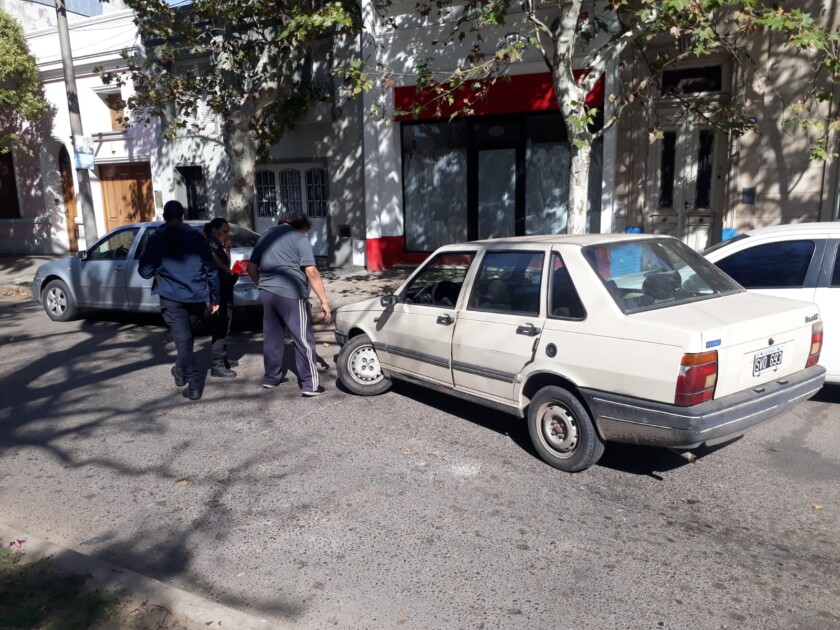 Este sábado se produjo un impactante accidente en la intersección de Bv. Moreno y Belgrano, cuando un Fiat Duna sufrió la pérdida de una rueda delantera. Como consecuencia de esta falla mecánica, el conductor perdió el control del vehículo y colisionó con un VW Bora que se encontraba estacionado en ese momento.