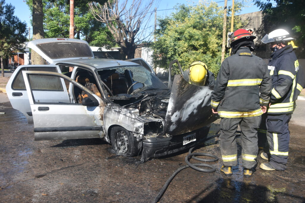 Este sábado en las primeras horas un automóvil que circulaba por la vía publica comenzó a incendiarse sufriendo perdidas totales.