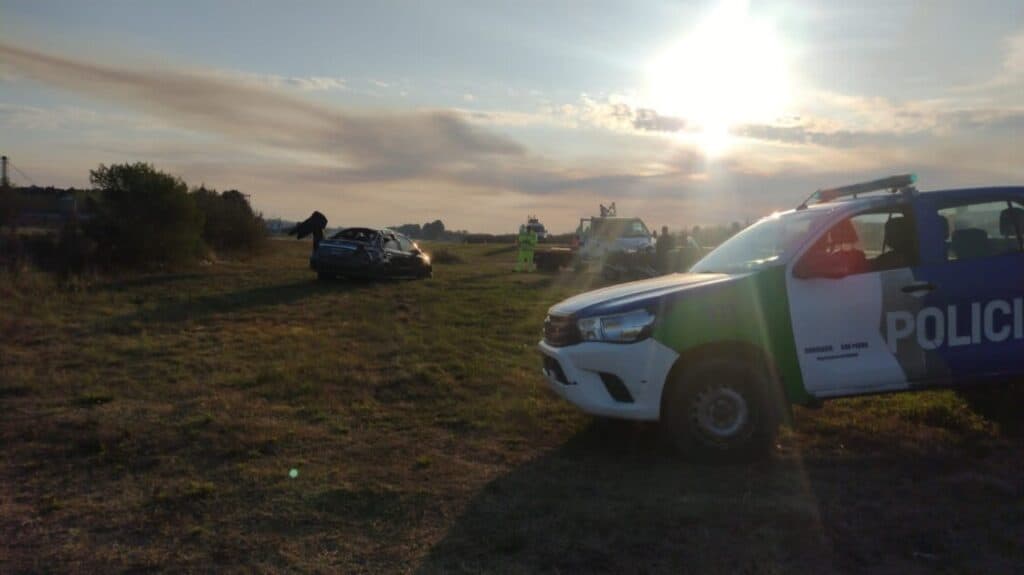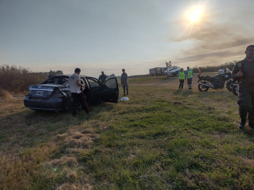 El hecho ocurrió en el Km 155 de la ruta nacional 9 carril Rosario – Buenos Aires, donde un automóvil Chevrolet Aveo color gris conducido por una ciudadano de 36 años de edad domiciliado en la ciudad San Nicolás acompañado por otro de 37 años y su hijo de 12 años, por razones que se tratan de establecer pierden la estabilidad del rodado volcando sobre la banquina de la autopista.