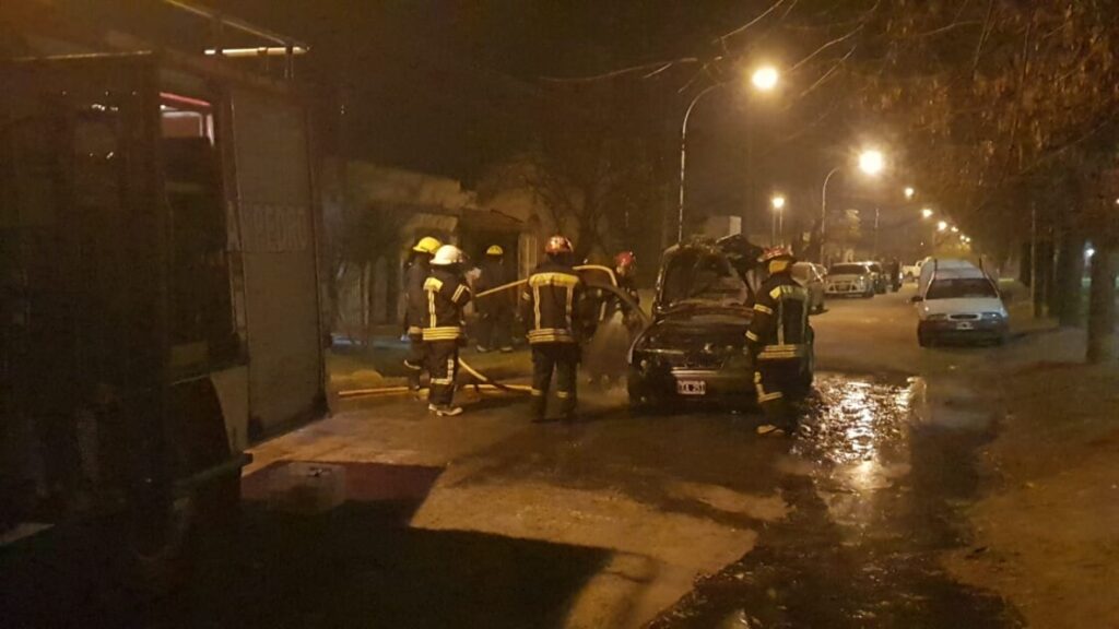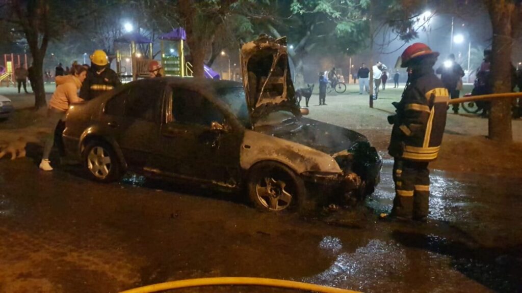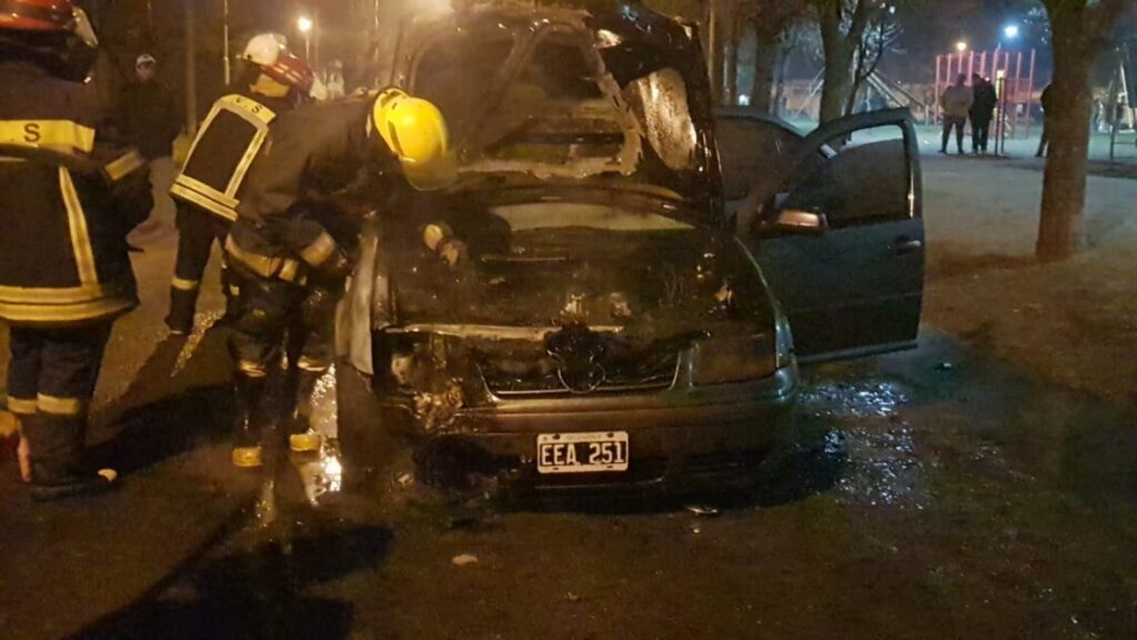 Una unidad del cuartel de Bomberos Voluntarios sofocó el incendio de un automóvil con GNC que se prendió fuego mientras circulaba por la vía publica en el barrio Los Aromos.