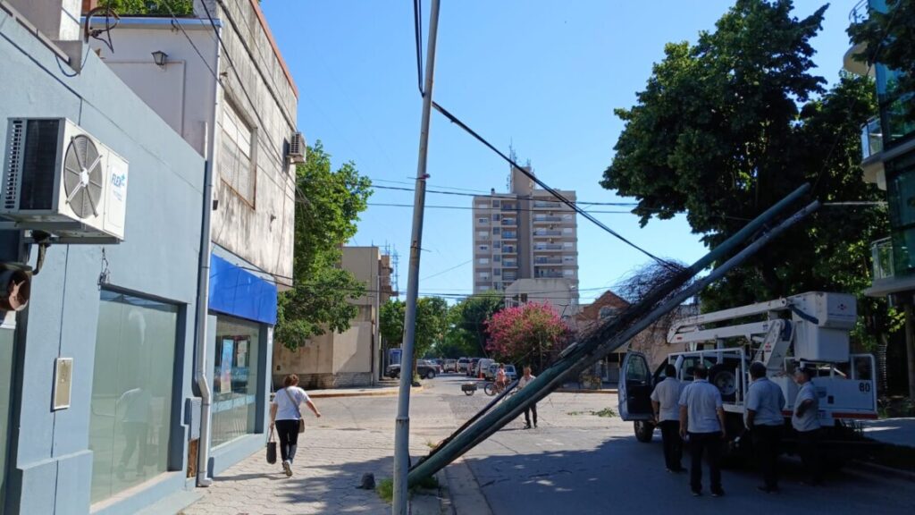 Como consecuencia, cinco postes de madera quedaron inclinados o directamente quebrados. Algunos cayeron sobre la calzada, otros quedaron sostenidos por los cables, y uno estuvo a punto de impactar contra el ventanal de un edificio recientemente construido en las inmediaciones de Salta y la avenida.