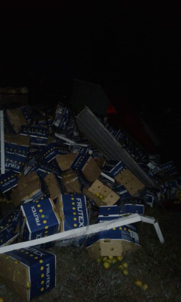 El siniestro tuvo lugar en horas de la madrugada de hoy en el km 169 de la Ruta Nacional 9 mano hacia Buenos Aires, donde un camión marca Scania G340 color rojo perteneciente a la empresa Expreso Rivadavia conducido por un ciudadano de 33 años oriundo de la provincia de Tucumán, por razones que se tratan de establecer pierda el control volcando sobre el cantero central y tirando toda su carga de limones.