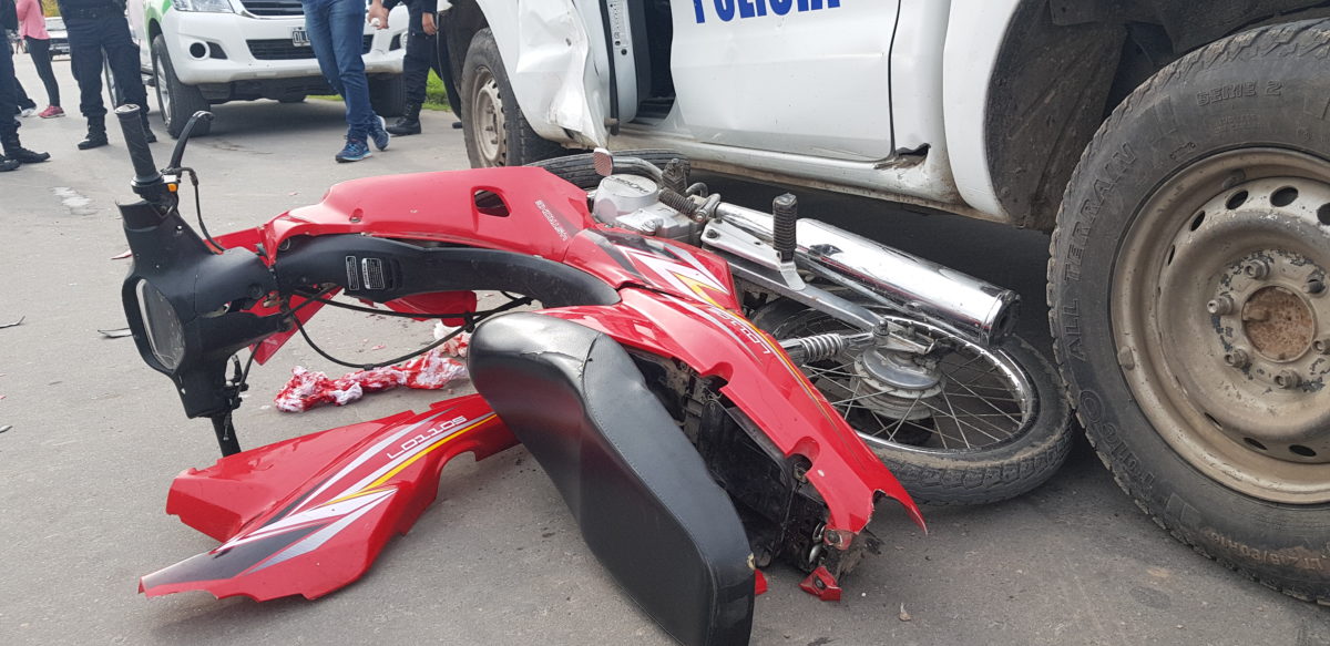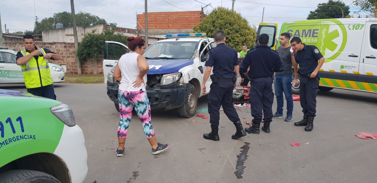 Se produjo una colisión entre una patrulla y una motocicleta donde resultaron heridos el conductor de la moto y el policía que conducía el móvil, ademas el conductor del rodado de menor tendría antecedentes penales.