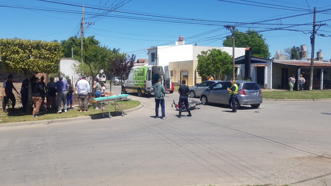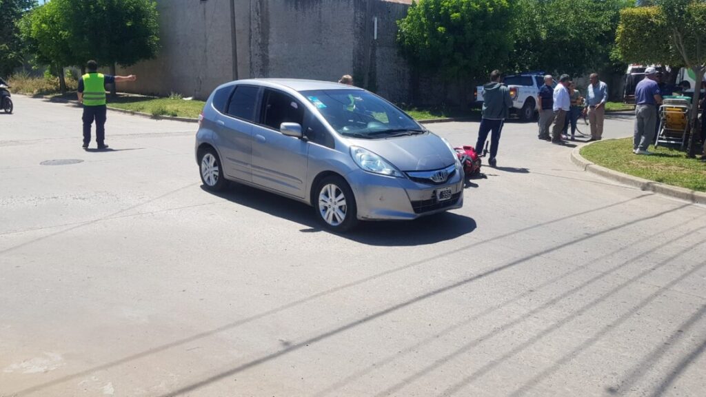 El siniestro tuvo lugar en la esquina de Obligado y Segundo Sombra donde por razones que se tratan de establecer un motocicleta Honda Twister 150 cc en la que circulaba un ciudadano junto a su hijo fueron impactados por un automóvil Honda FIT conducido por una mujer mayor de edad.