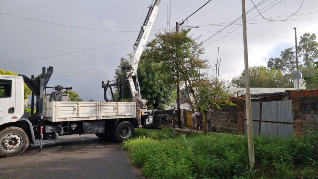 En el lugar se encuentra trabajando personal técnico de la cooperativa eléctrica, que lleva adelante tareas para restablecer el servicio lo antes posible, tanto en lo que respecta a la energía como a las conexiones de comunicación afectadas.