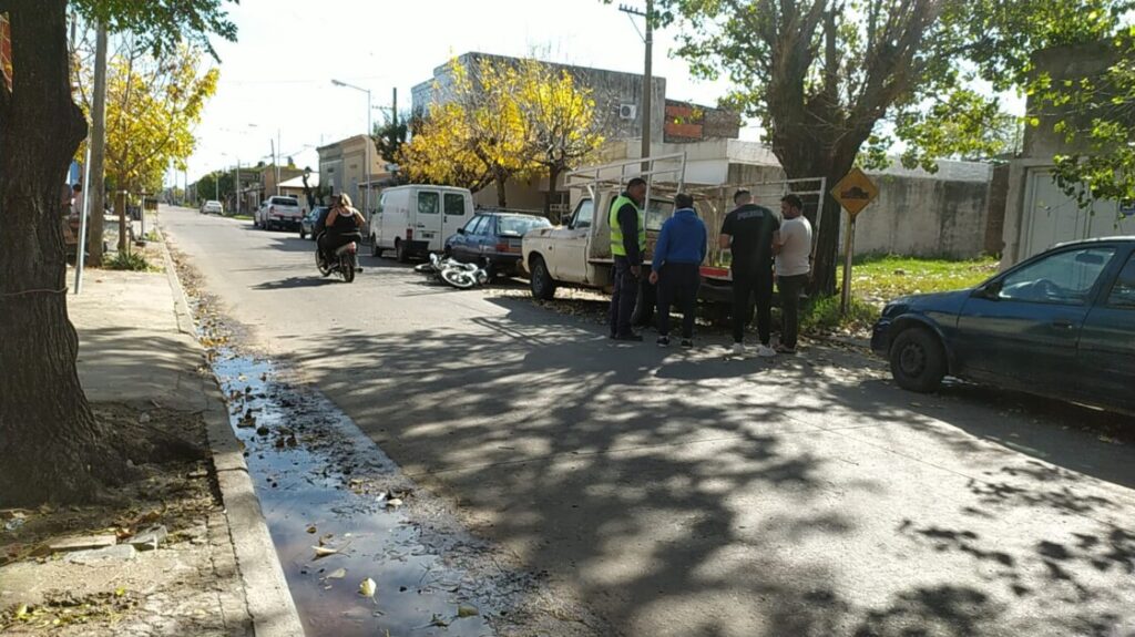 Este lunes al mediodía, un choque entre una moto y una camioneta marca Ford F-100 se produjo en la intersección de Saavedra y Las Provincias. Según testigos presenciales, el conductor de la moto podría estar bajo los efectos del alcohol al momento del accidente.