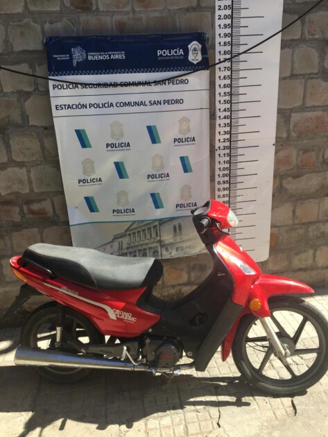Este lunes alrededor de las 15 hs el personal policial se hace presente en Ruffa al 700, aprehende a un ciudadano 21 años, secuestrando una motocicleta 110 c.c. que sustrajere sin violencia momntos antes vereda de Bvard Moreno y Benefactora Sampedrinas, propiedad de un ciudadano de 59 años.