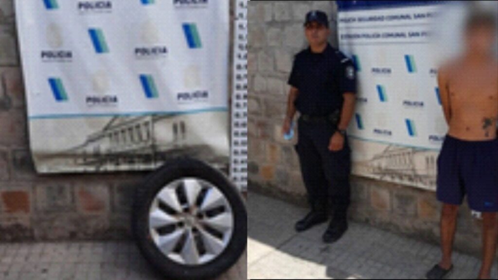 Momentos después, el mismo masculino es sorprendido por la víctima mientras que se encontraba en el estacionamiento de vehículos ubicado en calle Lavalle entre Mitre y 25 de Mayo, intentándole sustraer una rueda de automóvil.