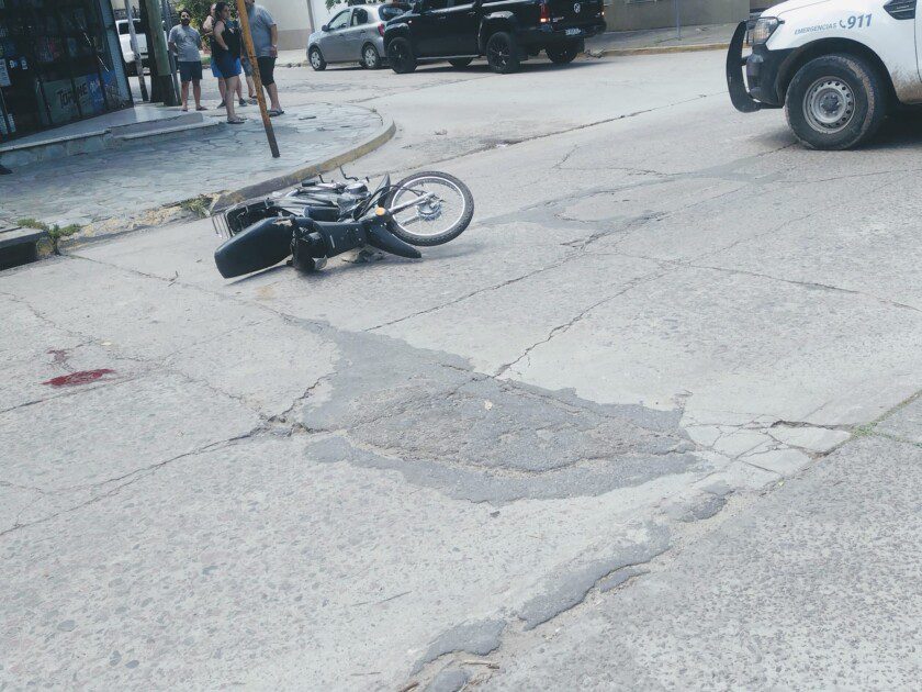 Una camioneta Toyota chocó con una motocicleta Honda en la intersección de la Avenida Sarmiento con la calle Libertad.