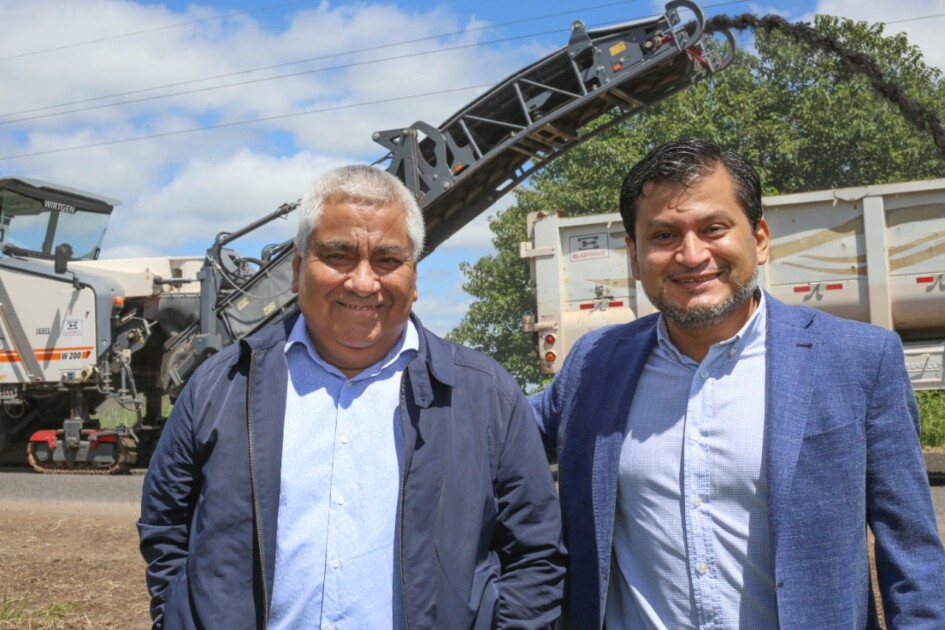 Esta mañana el Intendente Dr. Ramón Salazar y el ex Intendente Cecilio Salazar visitaron la zona en la que la empresa ELEPRINT S.A. comenzó con la repavimentación de la Ruta 191.
