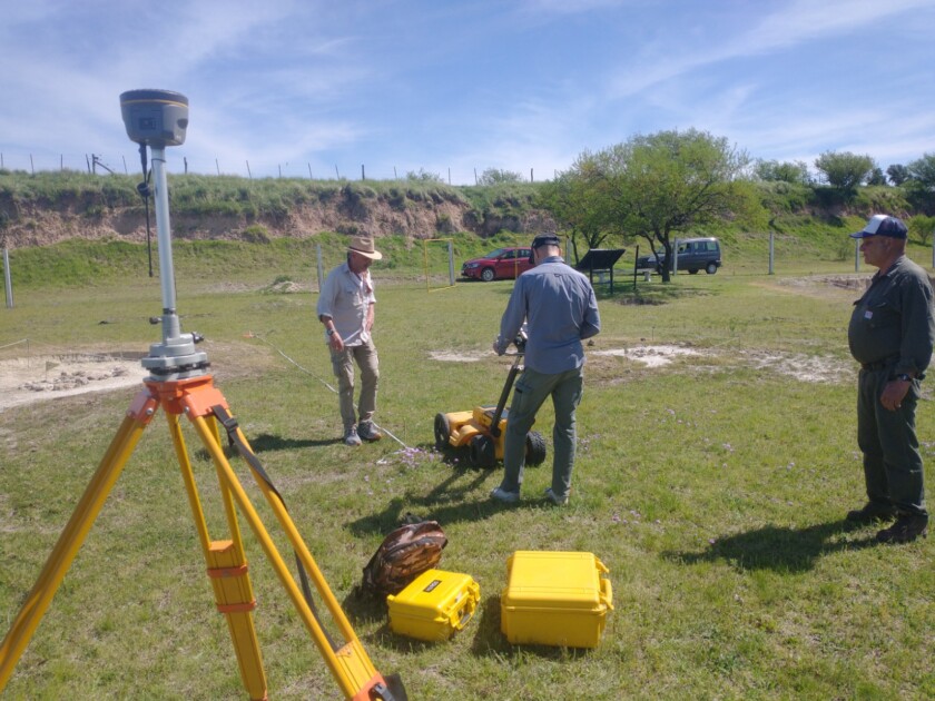 La prospección tuvo como prioridad detectar y posicionar el paleocanal presente en un sector de la Reserva Paleontológica Campo Spósito, emplazada en un campo de la familia del mismo nombre, que colabora con el museo desde el descubrimiento del sitio. Los técnicos Sergio Katabian y Daniel Cofler trabajaron junto al equipo local para relevar el área con precisión.