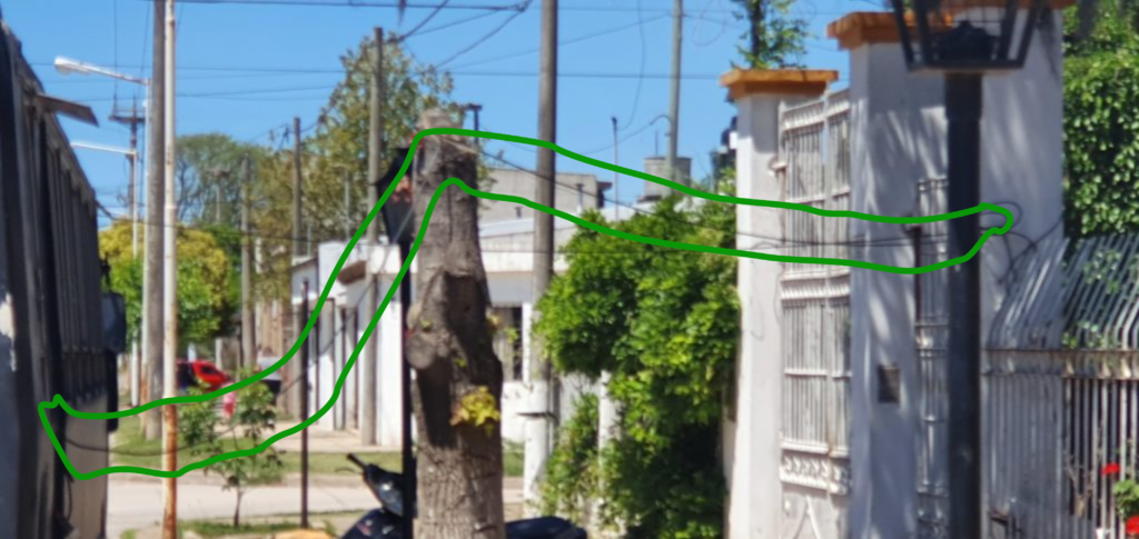 El funcionario también comentó que, ademas, se pueden ver cables de electricidad colgando sobre la vereda que provienen desde el domicilio hacia el rodado.