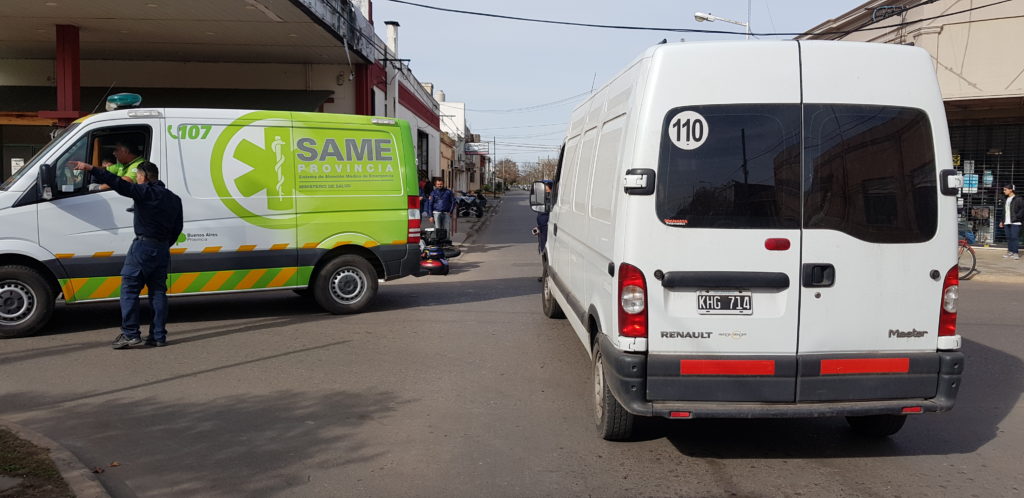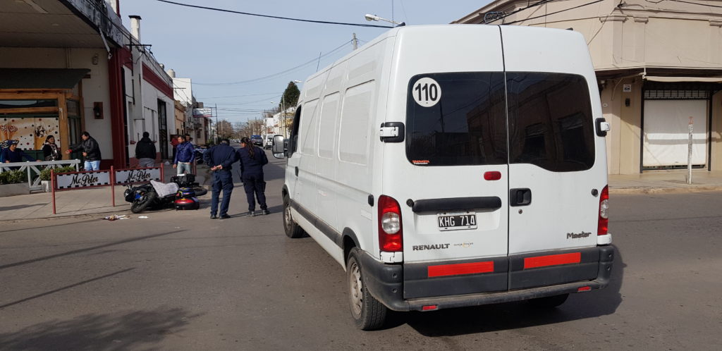 La esquina de Mitre y Colón, fue protagonista nuevamente de otro accidente de transito, esta vez entre una motocicleta marca Motomel Tunning 250 cc, que fue impactada por una camioneta marca Renault Master, color blanca, en la que también circulaba un hombre mayor de edad.
