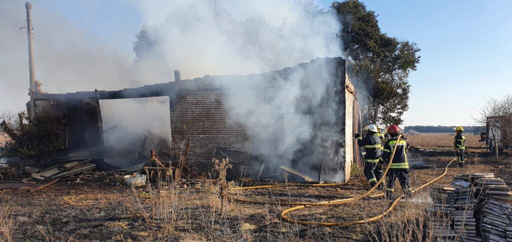 Allí, por cuestiones que se deberán establecer, ardió por completo un galpón donde se almacenaban maquinarias e implementos rurales.