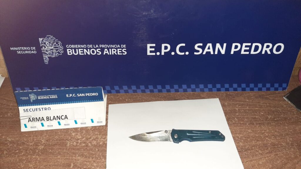 En horas de la tarde noche el personal policial de la comisaría local en calle Mitre y Libertad aprehenden a un sujeto masculino de 20 años, quien se encontraba en la vía pública portando arma blanca tipo sevillana.