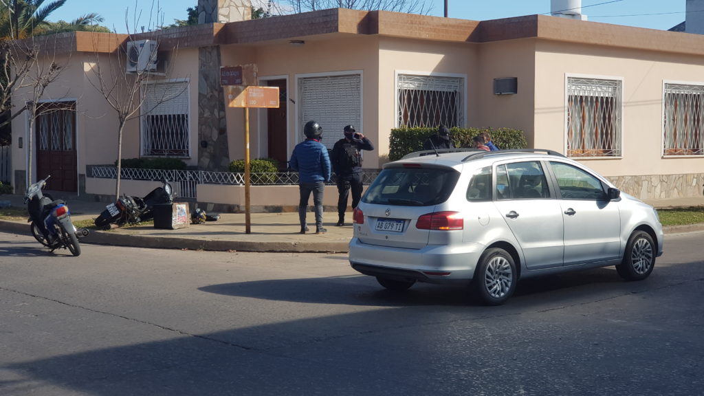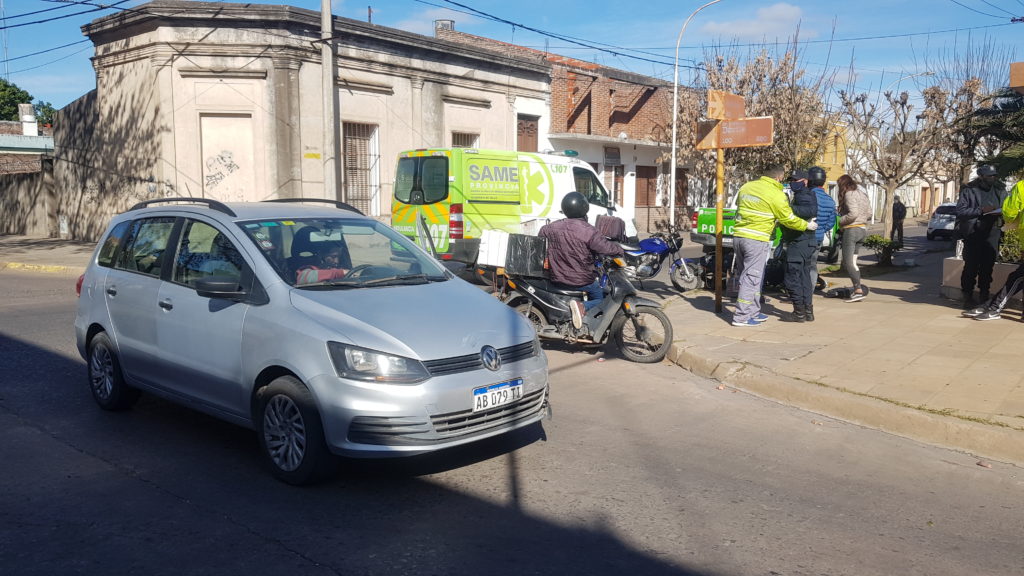 El siniestro ocurrió en las primeras horas de la tarde en calle Davila y 25 de Mayo, donde una motocicleta Guerrero Trip 110 cc color negra en la que circulaba un joven que se desempeña como mensajero colisiono con un automóvil Volkwagen Suran color gris en el que circulaba un hombre mayor de edad.
