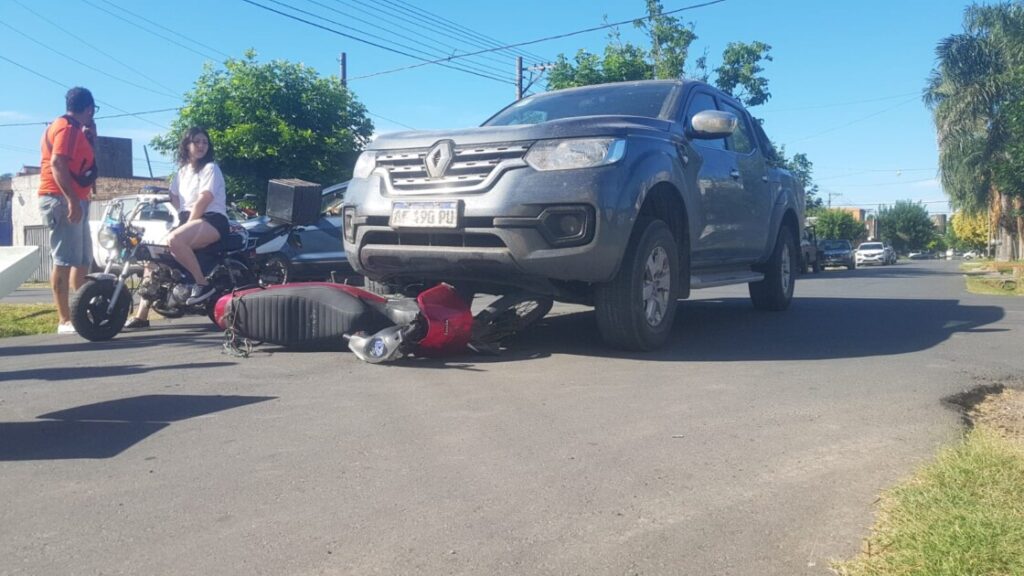 Un mensajero resultó herido y fue llevado al hospital. El accidente involucró a una camioneta Renault, conducida por un adulto, que impactó con una motocicleta de 110 cc operada por un joven mensajero.