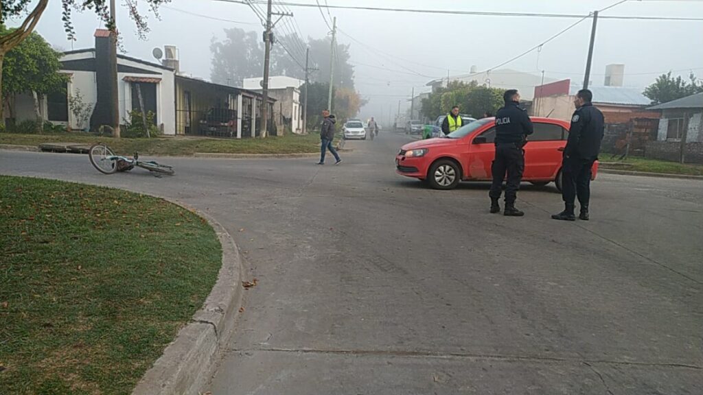 El accidente tuvo lugar en la mañana de este miércoles en la esquina de las calles Obligado y Segundo Sombra. En el lugar por causas que se tratan de establecer, una bicicleta y un automóvil Volkswagen Gol rojo protagonizaron el siniestro por el cual debió ser asistida una mujer que se dirigía a bordo del rodado menor.