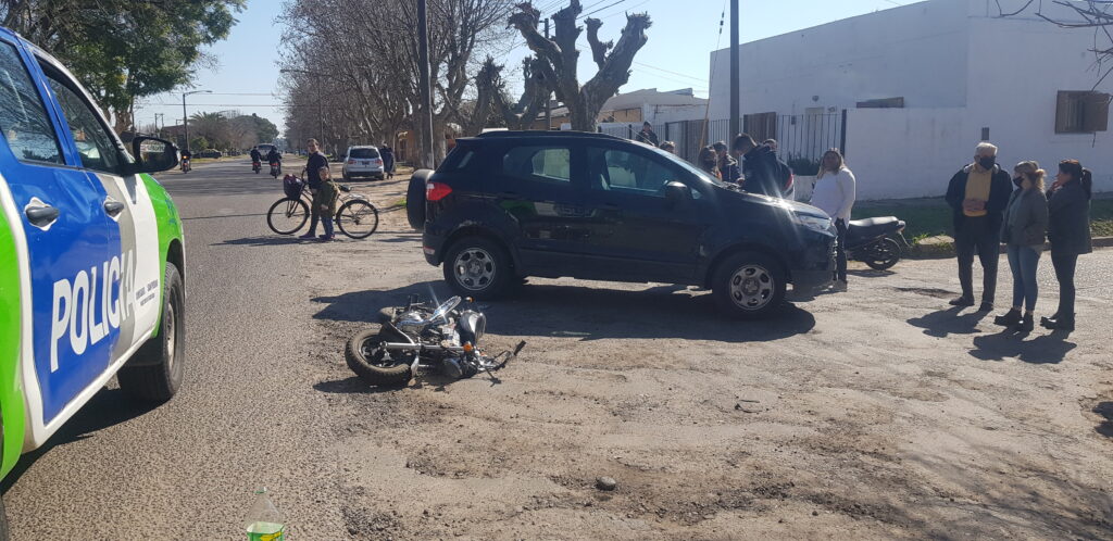 Este mediodía ocurrió un accidente de tránsito donde se vieron implicados un automóvil y una motocicleta con una conductora que estaria alcoholizada segun informo la policia de nuestra ciudad.