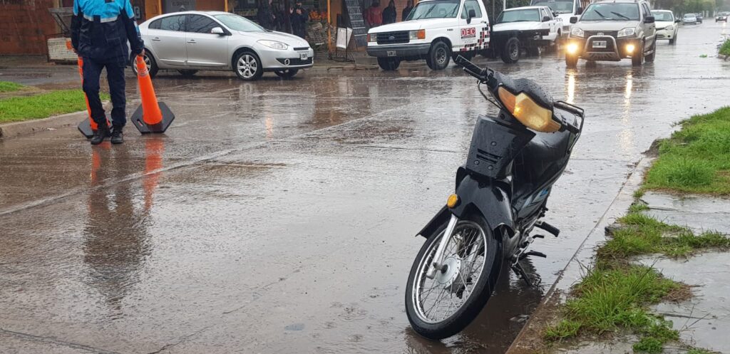 El siniestro tuvo lugar en la esquina de Caseros y Chivilcoy alrededor de las 10 horas, donde una motocicleta 110 cc en la que circulaba una mujer y un joven colisiono con un automóvil Renault Fluense conducido por un ciudadano.