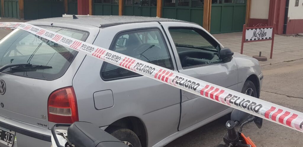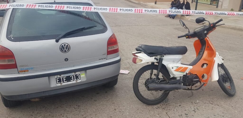 En la jornada de hoy viernes ocurrió un accidente de transito en la esquina de Mitre y Colon donde por motivos que se tratan de establecer una motocicleta Mondial 70 cc que era manejado por un joven mayor de edad circulaba por Mitre golpea en la puerta del acompañante de un automóvil Volkswagen Gol color gris conducido por una mujer que cruzaba la arteria principal de la ciudad, por la fuerza del golpe inclusive se rompió uno de los vidrios del rodado.