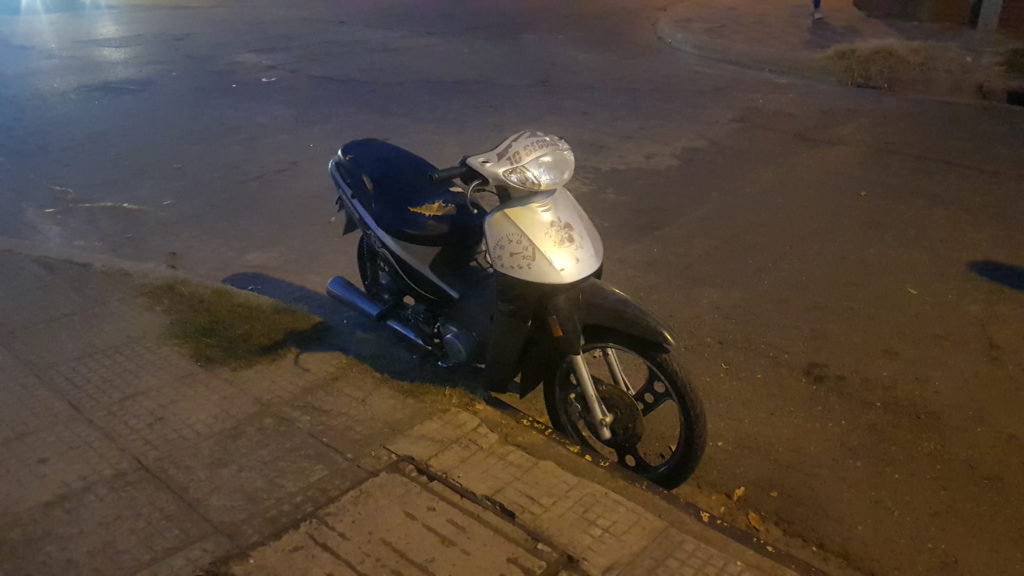 En la esquina de Belgrano y Alvear por motivos que se tratan de establecer colisionaron una motocicleta Guerrero Trip 110 cc color gris que fue impactada por un automóvil Renault 12 color gris.