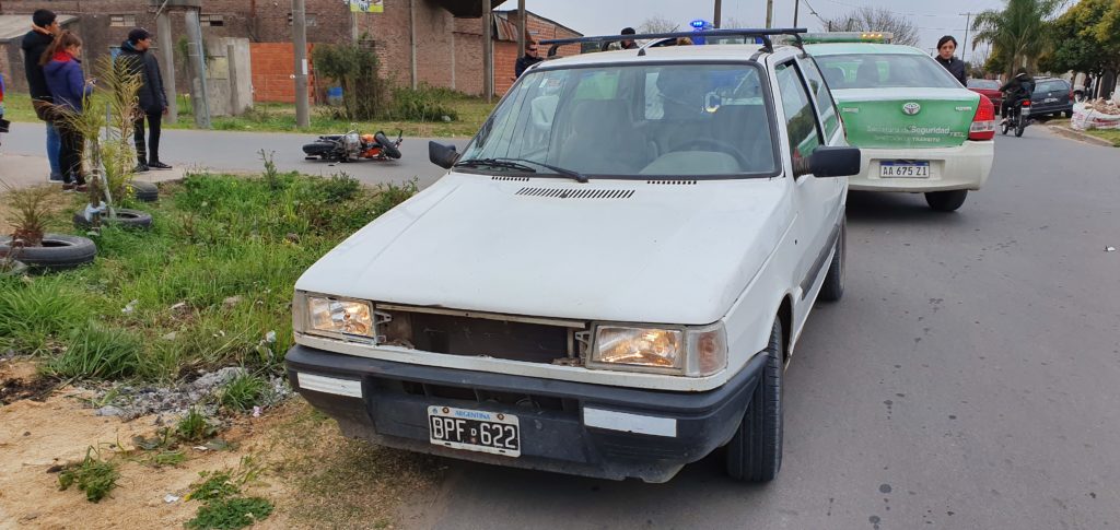 Alrededor de las 16:30 hs en la intersección de las calles Nieto de Torres y Manuel Iglesias colisionaron un automóvil Fiat Uno color blanco y una motocicleta tipo dax 70 cm cc en la que circulaba una joven mujer con su pequeño hijo.