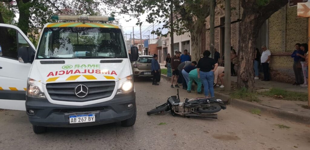 El hecho tuvo lugar en la esquina de Gomendio y Av. 3 de Febrero donde ocurre un siniestro vial entre un automóvil y una motocicleta 110 cc en la que circulaban una mujer y un joven.